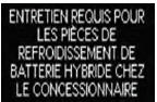 hybride (batterie de traction) est requis Il se peut que le filtre soit encrassé, que l'évent d'admission d'air soit obstrué ou que le conduit ne soit pas hermétique. → Faites effectuer l'entretien du composant de refroidissement de la batterie hybride (batterie de traction) chez votre concessionnaire Lexus. |