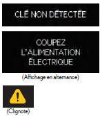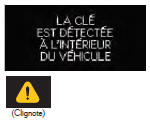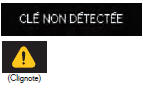 | Tentative de conduite du véhicule alors que la clé habituelle n'était pas à l'intérieur du véhicule. → Vérifiez si la clé à puce est bien à l'intérieur du véhicule. | |||