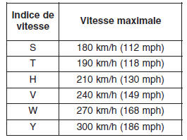 Indices de vitesse des pneus
