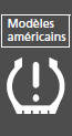 | Clignote pendant environ une minute et reste ensuite allumé s'il y a un problème au niveau du TPMS, ou lorsqu'un pneu de secours compact est installé temporairement. | Clignote et demeure allumé - Faire vérifier le véhicule par un concessionnaire. Si une roue de secours compacte est installée sur le véhicule, dès que possible, faire réparer le pneu régulier et le replacer sur le véhicule, ou le remplacer par un pneu neuf. | ![]() |